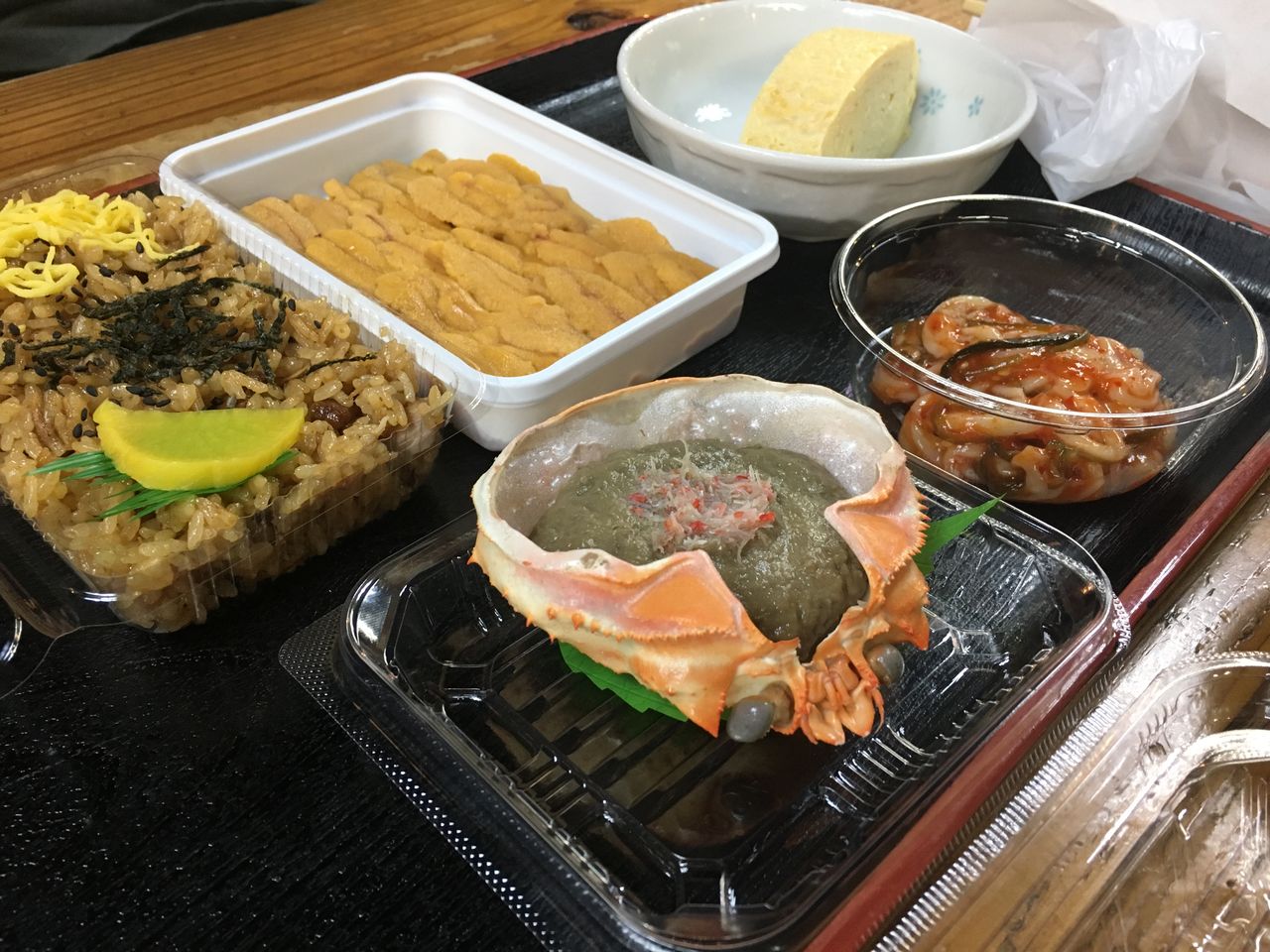 天ぷら、ウニ、かにみそ