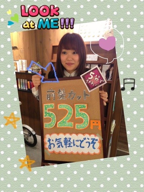 レプシィムでは、前髪カットを『525円』 でさせていただきます(o^∇^o)ノ